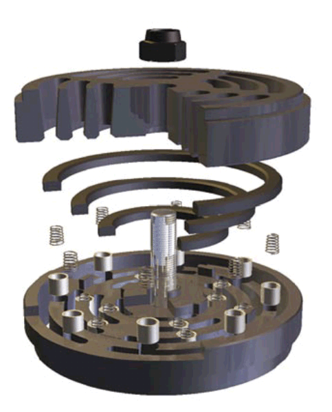 Конструкция пружин: Технология защиты пружин. Расположенные по окружности пружины стабилизируют движение пластины